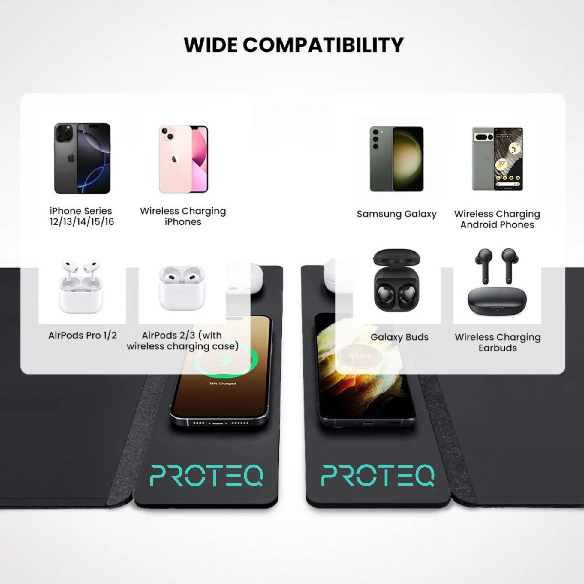 - Simultaneous charging for smartphone and earbuds