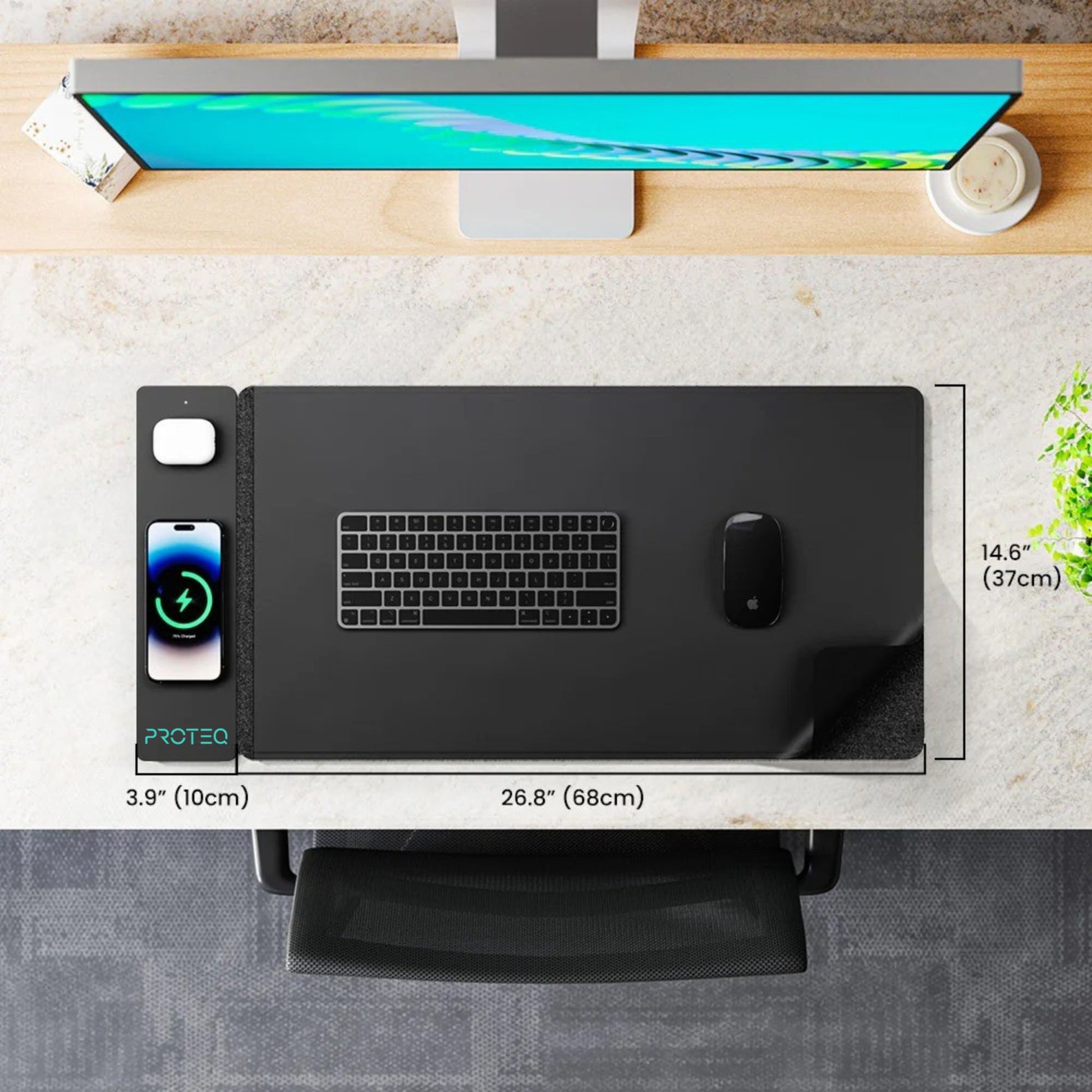 The PROTEQ Wireless Charging Desk Mat is engineered to elevate modern workspaces with intelligent functionality and a refined, minimal aesthetic. Crafted from premium PU vegan leather, it seamlessly combines a desk mat, mouse pad, writing surface, and wireless charging solution into one sophisticated workstation essential.