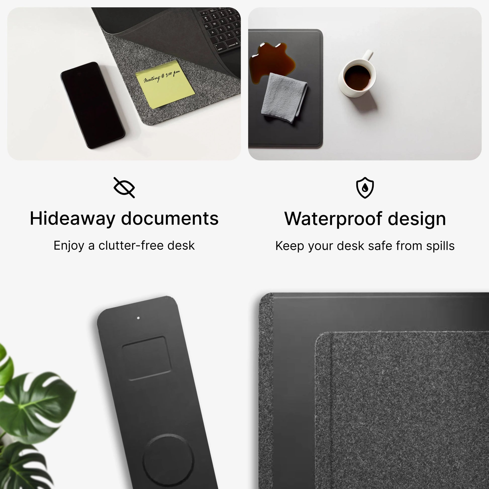 - Desk protection with a clean, professional aesthetic